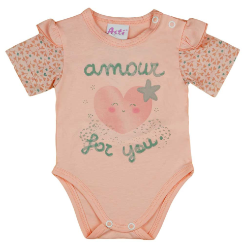 A narancssárga rövid ujjú body szívecskés mintával és fodros díszítéssel csodálatos választás a legkisebbeknek. A vállon patentos kialakítás lehetővé teszi az egyszerű fel- és levételezést, miközben a trendi design biztosan tetszeni fog a szülőknek is.