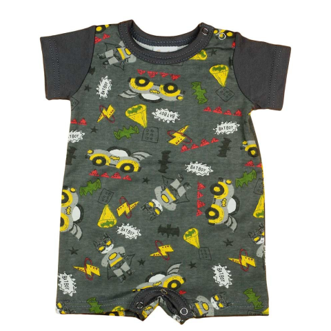 Egy autómániás kicsire tökéletes választás ez a szürke rövid ujjú baba napozó, amelyet élénk autós minták díszítenek. A vállon lévő patentoknak köszönhetően gyorsan és könnyedén lehet fel- és levenni, ami a pelenkázást is megkönnyíti. A 100% pamut anyagbó