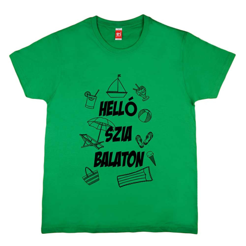A Balaton szerelmeseinek tökéletes választása ez a vidám, rövid ujjú gyerek póló, amely egy kedves Balatonos mintát visel. Az élénk zöld szín a nyár hangulatát idézi, és kiválóan passzol a vakációs ruhatárba. A póló unisex fazonnak köszönhetően fiúk és lá