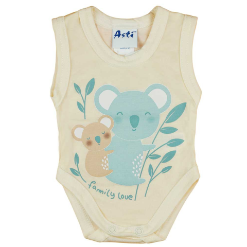 Ez az ujjatlan baba body a természetbarát szülőknek tökéletes választása a koalás mintájával. Unisex megoldás, amely egyaránt jól mutat fiúknak és lányoknak, natúr alapszínén pedig különösen szép a játékos állat motívum. A ruhát vékony, 100% pamutból vart