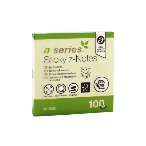 1 kép A-Series Jegyzettömb öntapadó, 75x75mm, 100lap, 'Z' A-Series, sárga