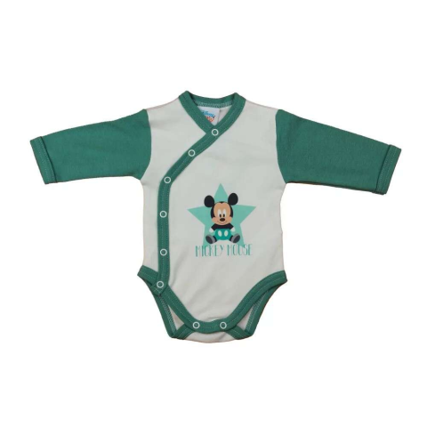 1 kép Ab R Hosszú ujjú elől patentos pamut body - Zöld-Fehér - Mickey egér (68)