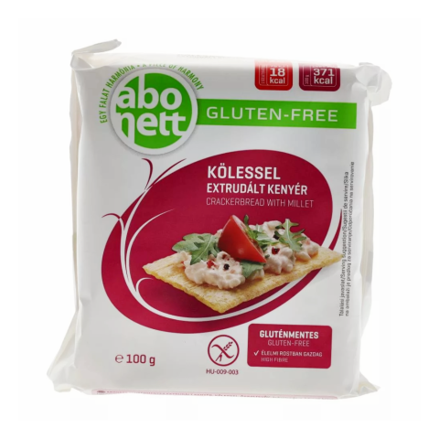 Abonett gluténmentes extrudált kenyér, kölessel 100 g Összetevők: kukoricadara, hántolt köles (20%), étkezési só