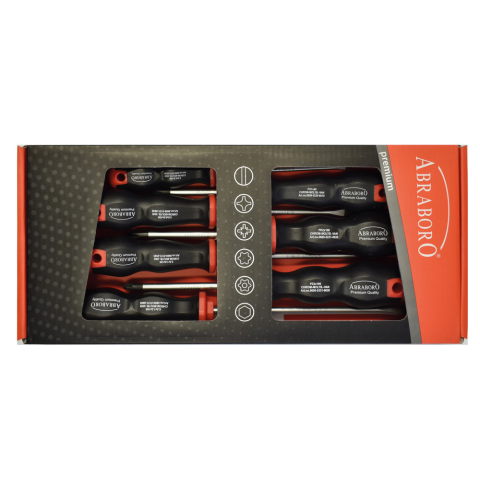 Abraboro® prémium minőségű 7 részes készletek, T2, Black line Lapos: 3,0x100/5,5x125/8,0x175/ Phillips: PH1x80/PH2x100/ Pozidrive: PZ1x80/PZ2x100