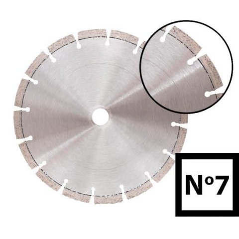 ABRABORO Univerzális, gyémántszemcsés vágókorong No.7 Lézerhegesztett szegmensek Univerzális gyémánttárcsa, építőipari használatra, tégla, beton, mosott beton, klinker, térkő, pala és más általános építőipari anyag vágásához Falhoronyba is javasolt Szá