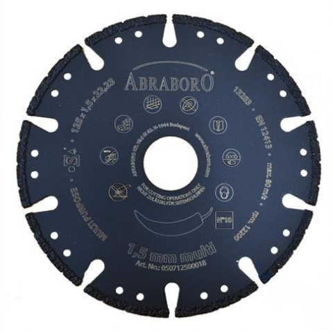 ABRABORO MULTI gyémántszemcsés vágókorong No.18 Extra vékony szegmenses vágótárcsa acél alaplappal, a szegmenseken nagy mennyiségű prémium minőségű gyémántszemcsével Alacsony vibrációs sznt, kecesebb tárcsatörés Szikra és porszegéy Prémium kategória Aj