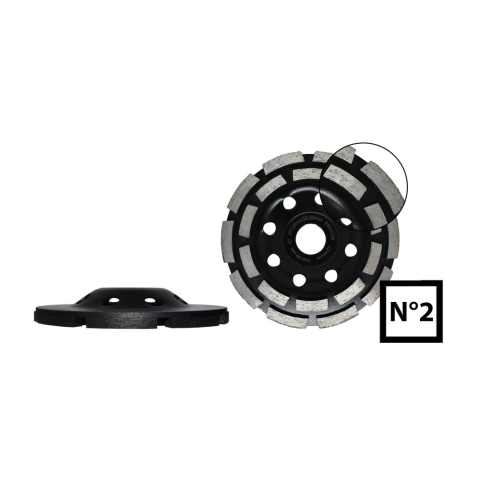 Gyémántszegmensek két sorban Kitűnő csiszolási teljesítmény Beton, mosott beton, terméskő, gránit csiszolásához Ez a strapabíró csiszolókorong kivételes felületi finomítást és tartósságot kínál. A finoman szemcsézett felület gyors és hatékony anyageltá