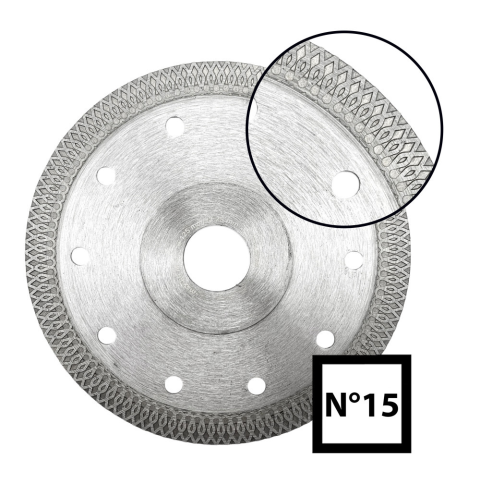 Folyamatos vágóél, egyedi élgeometriával, gyors és tiszta vágás Extra vékony tárcsa (1,4+/-0,2 mm) Furaterősített alaplap Kiválóan alkalmas gres (kőporcelán), kemény kerámialapok, gránit, cotto lapok, terazzo és porcelán vágásához Száraz és vizes vágáshoz