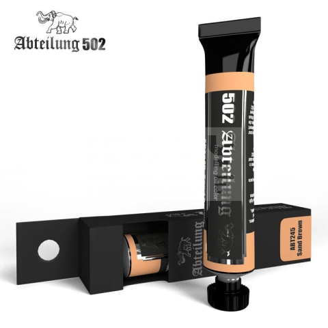 Abteilung502 - SAND BROWN - Homokbarna színű olajfesték 20 ml - ABT245 Az Abteilung502 olajfesték család egy kiváló minőségű termék kifejezetten makettezőknek, és figura festőknek kifejlesztve. A termékekben kevesebb lenolaj található, így meggátolva, ho