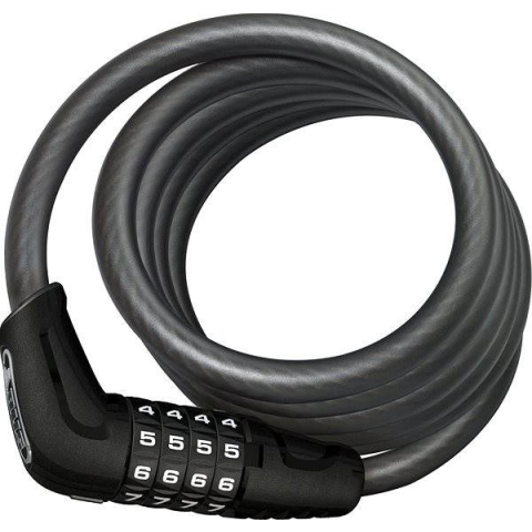Kerékpár zár - sodrony, zárás kóddal, hossza 1800 mm, spirál, alkalmas elektromos kerékpárokhoz, elhelyezése vázra, RC3 biztonsági osztály, tömege 540 g Az Abus 5510C/180/10BK láncos zár egy 10 mm vastag rugalmas acélkábel, 180 cm hosszúsággal és 540 g súllyal. Ráadásul tartós műanyag bevonattal rendelkezik, amely megakadályozza az elektromos kerékpár