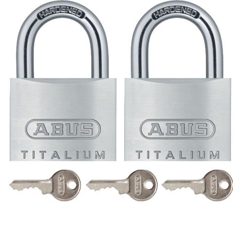 ABUS 2 db 40 mm-es Titalium lakat, 3 kulcs, egyforma zárat, edzett acél kengyel.