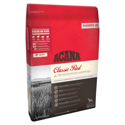 - Pontosan ezért készül az ACANA Classic Red fűvel táplált bárányból, Angus marhából és Yorkshire sertésből.