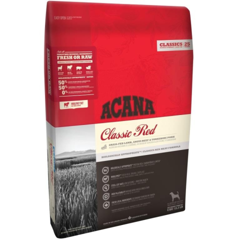 - Pontosan ezért készül az ACANA Classic Red fűvel táplált bárányból, Angus marhából és Yorkshire sertésből.