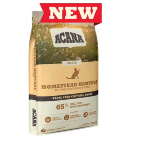 - Tápláld a kis házi ragadozód minőségi, állati alapanyagokkal telezsúfolt étrenddel! Az ACANA Homestead Harvest szabadon tartott csirkéből, pulykából és kacsából készült.