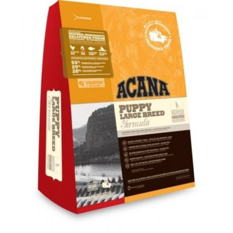- Ezért tartalmaz az ACANA PUPPY LARGE BREED helyi farmokról származó csirkehúst és tojást, Csendes-óceánból fogott lepényhalat, és az Okanagan-völgyben termelt gyümölcsöket és zöldségeket.