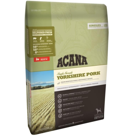 - A gabonamentes ACANA Yorkshire Pork kizárólag sertésből származó állati alapanyagokból készült.