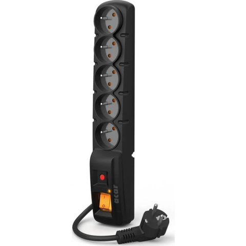 ACAR F5 PRO Túlfeszültség védő elosztó 5 aljzatos 5m - Fekete (W0094)