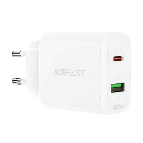 AceFast A25 hálózati töltő 1xUSB-C + 1xUSB-A, PD20W fehér (A25wh)