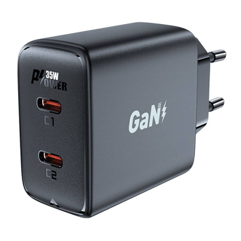 AceFast A49 hálózati töltő 2x USB-C 35W PD fekete (A49 black) mobiltelefon kellék 1 kép