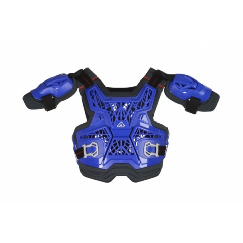 Acerbis gyerek cross páncél – Gravity Kid Roost – kék Innovatív, méhsejt-textúrájú kialakítással fröccsöntve, amely növeli a szellőzést és a védelmet, miközben csökkenti a súlyt A gyermek testéhez alkalmazkodó műanyag panelek, puha biohabra rögzítve a jo