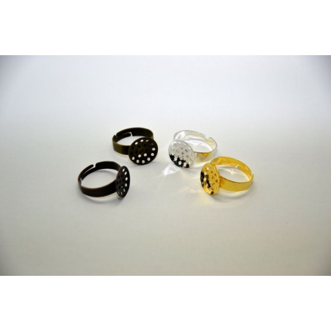 Jellemzői: Állítható méretű méretre széthúzható szitás fejrész fej méret: 13 mm Más néven fűzhető gyűrű alapként is ismert. Az alap lyukas, így könnyedén hozzá vagy ráfűzhető gyöngy, flitter, strassz stb…