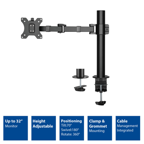 1 kép Act AC8325 Single Monitor Arm Office Solid Pro 10"-32" Black