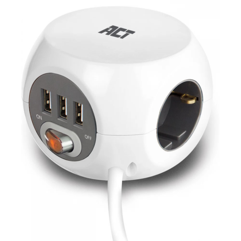 1 kép ACT CONNECTIVITY AC2405 Elosztó 3 aljzat 3x USB 1.5m fehér kapcsolós