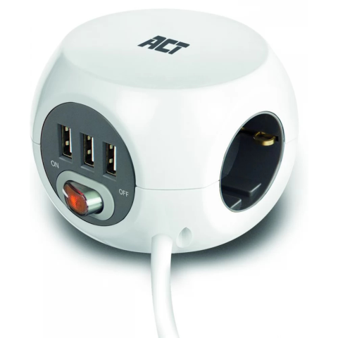 1 kép ACT CONNECTIVITY AC2410 Elosztó 3 aljzat 3x USB 3m fehér kapcsolós