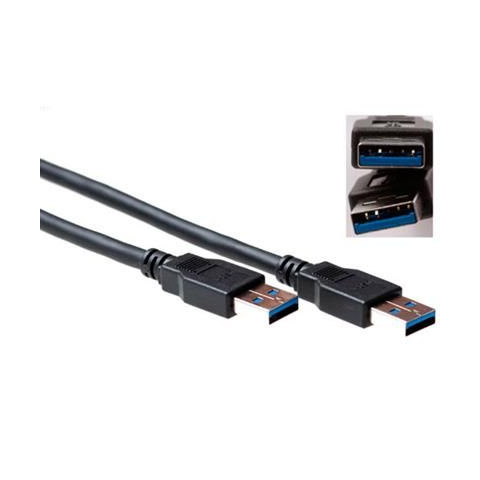 USB kábel, USB-A, USB-A, USB3.0, Male/Male, 2m, Black, Töltőkábel