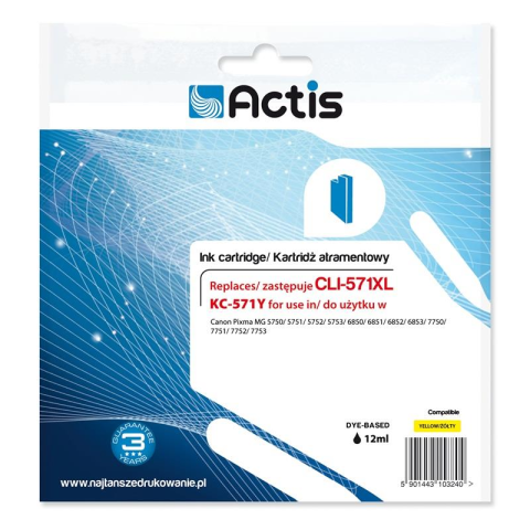 ACTIS (Canon CLI-571Y) Tintapatron Sárga (KC-571Y) nyomtatópatron & toner 1 kép