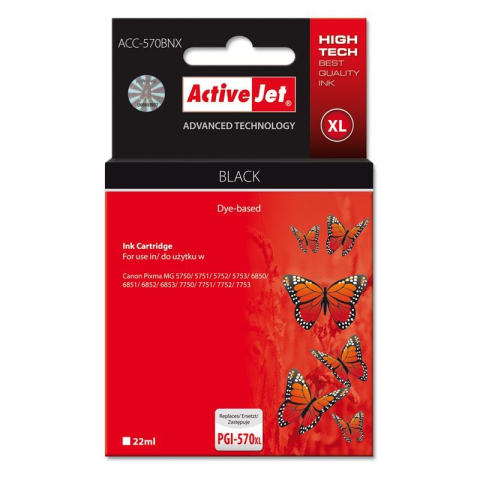 ActiveJet (Canon PGI-570Bk XL) Tintapatron Fekete (ACC-570BNX) nyomtatópatron & toner 1 kép
