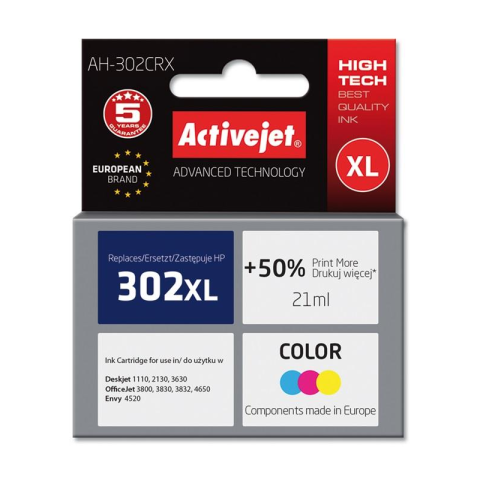 ActiveJet (HP 302XL F6U67AE) Tintapatron Színes (AH-302CRX) nyomtatópatron & toner 1 kép