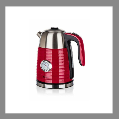 ACTIVER Rozsdamentes duplafalú vízforraló piros 14012015A lapos fenekű, 1,7 literes rozsdamentes acél testű, modern JUMPER duplafalú vízforraló minden konyha dizájn kelléke. A víz hőmérsékletét egy analóg hőmérővel ellenőrizheti. A vízforraló túlmelegedés elleni védelemmel van ellátva, talppal rendelkezik