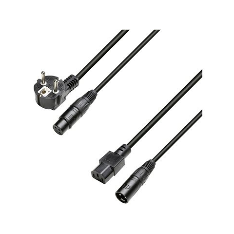 Tápkábel - csatlakozó kábel, hosszúság 5 m, male csatlakozó 1× XLR3, 1× e-típusú dugvilla, female csatlakozó 1× XLR3, 1× IEC C13 kétoldalas végződés és mikrofon, egyenes végződés Adam Hall 8101 PSAX 0500 tápkábel - alapvető paraméterek Ez az előnyös Adam hall monitor tápkábel gondoskodik a készülék áramellátásáról Ez konkréten egy csatlakozó kábel 1× XLR3 Male konnektort kínál
