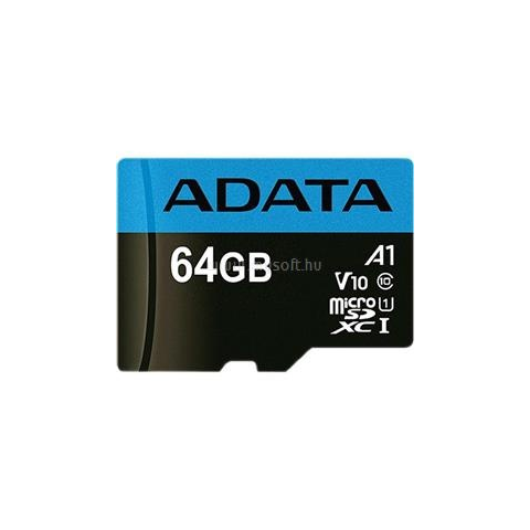 1 kép ADATA MicroSDXC Premier 64GB UHS-I CLASS10 memóriakártya + SDXC adapter (AUSDX64GUICL10A1-RA1)