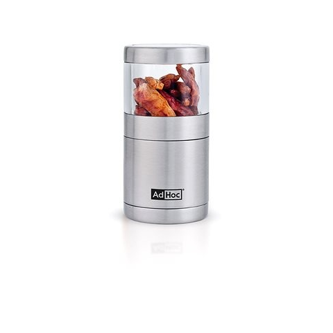Fűszerdaráló - kézi, átlátszó tartály, akril és rozsdamentes acél konstrukció, acél őrlőmechanizmus, mérete 7,6 × 3,8 cm (magasság × átmérő), tömege 175 g Elegáns utánélezzük chili egyedi csiszolás mechanizmus kérjük, hogy minden szerelmeseinek fűszeres ételek!A német AdHoc cég gyártóa kiváló minőségű fűszer darálókra specializálódott sok éven át.