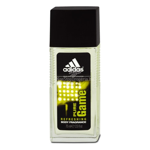 Férfi Natural spray 75 ml-es kiszerelés Ravasz, modern fűszeres férfi illat Felső tónusaiban a keserű grapefruit, illetve a lédús mandarin bontakozik ki Az illat bazsalikommal és pikáns borssal van fűszerezve Az Adidas Pure Game férfi Natural spray r