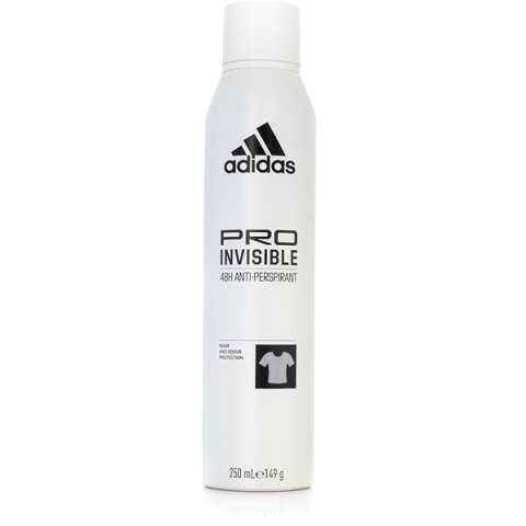 Izzadásgátló - női, spray, normál és száraz bőrre ajánlott, frissítő illat, frissítő, hosszantartó hatás, vegán, alkoholmentes, 250 ml-es kiszerelés Az ADIDAS Women Pro Invisible izzadásgátló kifejezetten olyan nők számára készült, akik megbízható védelmet keresnek az izzadás ellen, miközben ruházatukat is védeni szeretnék a nemkívánatos foltoktól