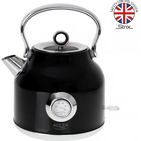 - Elektromos vízforraló hőmérővel - STRIX biztonsági vezérlőrendszer - Analóg vízhőmérséklet-mérő - Maximális kapacitás: 1.7 liter - Minimális kapacitás: 0.5 liter - 360 °-ban forgatható talp - Kön...