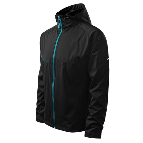 Könnyű Softshell kabát kapucnival - a kapucni összehúzható elasztikus zsinórral. Víz és szélálló, légáteresztő kabát. Végig cipzáras. A dzseki ujjának alsó szegélye tépőzárral állítható. Rejtett zsebekkel, kontraszt és fényviszaverő elemekkel.