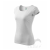 Női póló nagyon rövid ujjal. Nagyobb, kerek nyakkör, keskeny, azonos anyagból készült széllel. A póló csípőig ér. Nyomásra és hímzésre alkalmas.