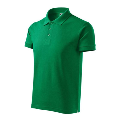 Férfi magas grammsúlyú galléros póló. Bevágással az oldalvarrásokon. Gallér és az ujjszegélyek 1x1 bordás kötéssel. Gombolópánt 3 gombbal, anyag színével megegyező gombbal.