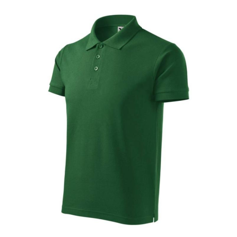 Férfi magas grammsúlyú galléros póló. Bevágással az oldalvarrásokon. Gallér és az ujjszegélyek 1x1 bordás kötéssel. Gombolópánt 3 gombbal, anyag színével megegyező gombbal.