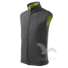 Férfi szabadidő mellény. Az oldalsó részek és a gallér belső oldala divatos mintával. Két elülső, cipzáras zseb a varrat mentén. Az alsó szegély elasztikus zsinórral összehúzható. Akasztófül. Nyomásra és hímzésre alkalmas.