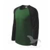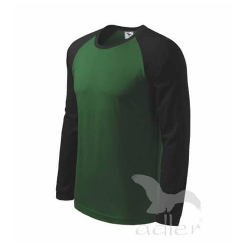 Magas grammsúlyú jó minőségi férfi póló hosszú ujjú raglán ujjakkal. Divatos keskeny csík a nyakrészben, az ujjak a színes variánsban kontraszt színben.