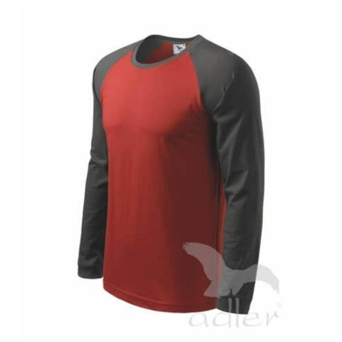 Magas grammsúlyú jó minőségi férfi póló hosszú ujjú raglán ujjakkal. Divatos keskeny csík a nyakrészben, az ujjak a színes variánsban kontraszt színben.