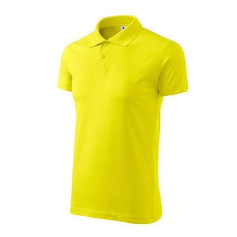 Rövid ujjú galléros póló, sima szövésű. Két gombbal, melyek az anyag színével egyezőek.