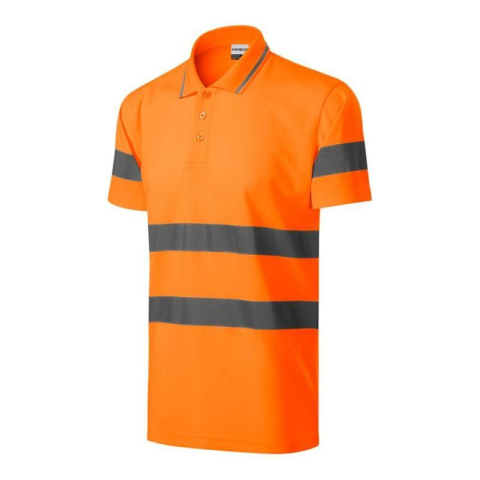 Jólláthatósági munkaruha, rövidujjú unisex galléros pamut póló, fluoreszkáló narancs és sárga színekben.EN ISO 20 471 (2. osztály) és EN ISO 13 688