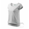 Trendi női póló nagyon rövid ujjal, bővebb szabással, az alsó széle széles szegélybe van levarrva. A póló csípőig ér. Az enzimatikus lágyító anyag biztosítja a puha és lágy érintést.