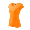 Női póló nagyon rövid ujjal. Nagyobb, kerek nyakkör, keskeny, azonos anyagból készült széllel. A póló csípőig ér. Nyomásra és hímzésre alkalmas.